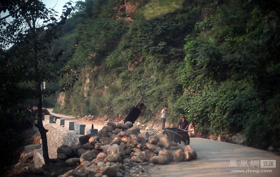 去往终南山的山路崎岖不平,远处传来一阵轰隆声,一同上山的朋友让我们躲在路两边,一辆山中修庙的工程车一颠一跛的开下来。这车一般是拉满沙石上去,空车下来。
